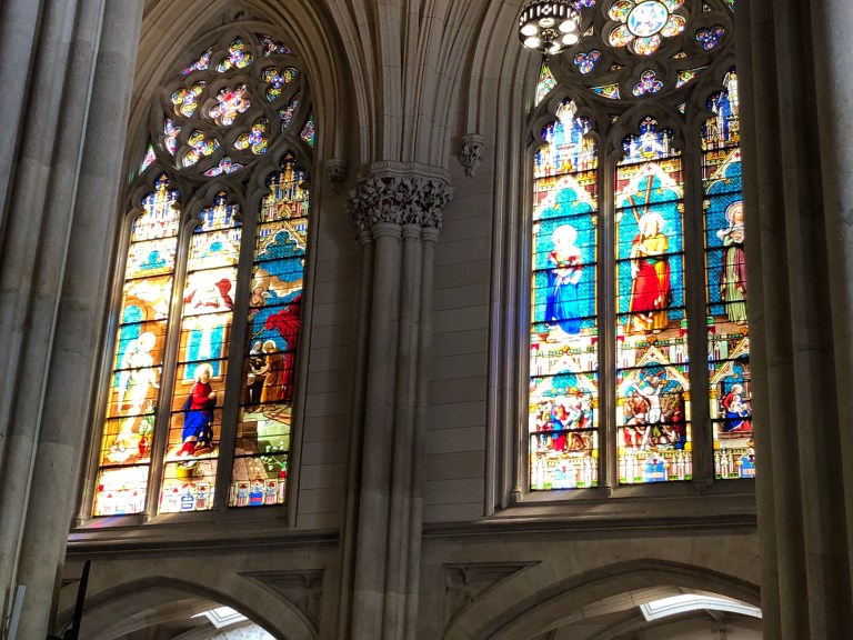 Leaving the museum we walk towards Central Park. We stroll along Fifth Avenue following along the park because there is shade. While the temperatures are very pleasant, the sun is still strong. A couple of stops – Tiffany’s (could not find what I was looking for), St. Thomas church to listen to a young boy’s choir practicing and St. Patrick’s just because we love the inside and the beautiful stained glass windows.