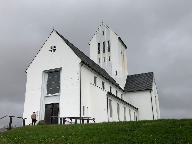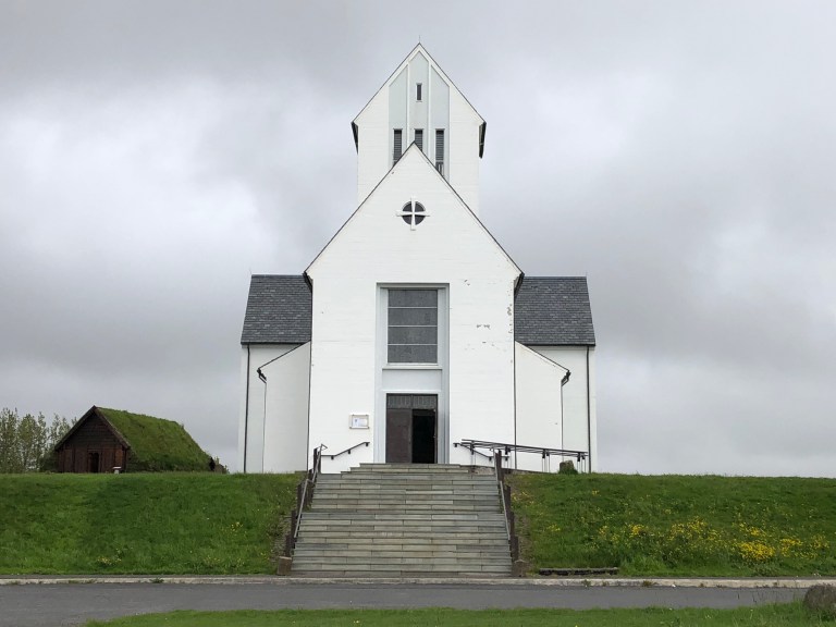 Next to the church is an older sod building which is a museum and not open when we are here. There is also an archeological site on the other side of the church property. This church building was built in 1956.