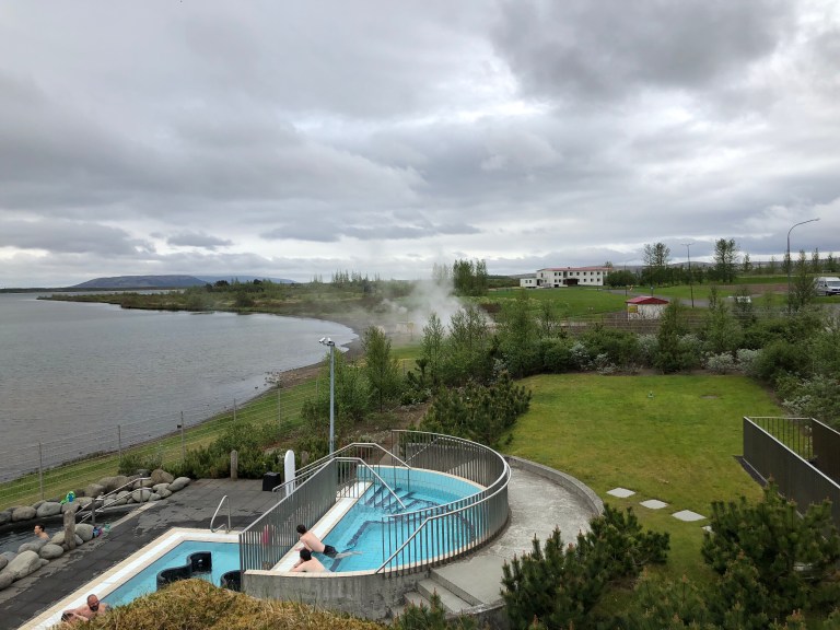 We have heard about a nice geothermal spa called Fontana in the small town of Laugarvatn on a lake. A quick look and we see two babies with their parents in the spa pools. Hhhmmmm not as inviting as we pictured.