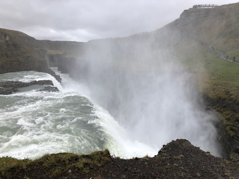 Now for the waterfall of all waterfalls. A short drive across a seemingly remove area you come to Gullfoss. It is compared to Niagara Falls in how iconic, powerful and massive in size. There is an easy trail to the falls and all the way down to the main overflow with lots of water spraying. It is spectacular!