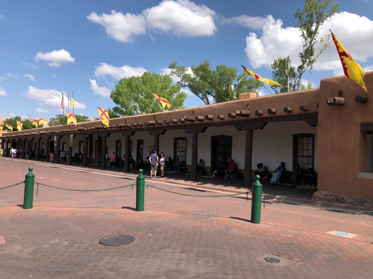 Tuesday morning already and we decide we need to go back to Santa Fe and explore some of the places we’ve enjoyed in the past.The Plaza with all the people selling their jewelry.
