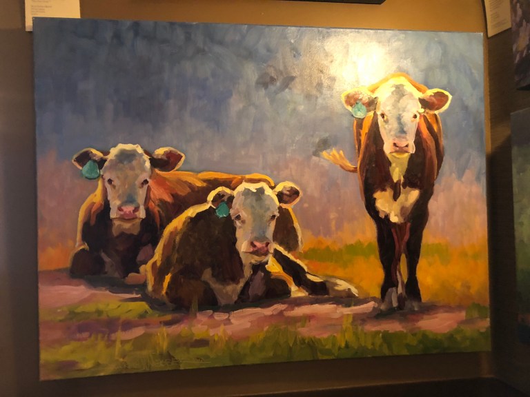 Finally a stop to see if there are more cattle pictures like the one Steve bought the last time we were in town. Guess what – there are more cattle for sale……and the price has gone up – should have bought a bigger herd the first time!