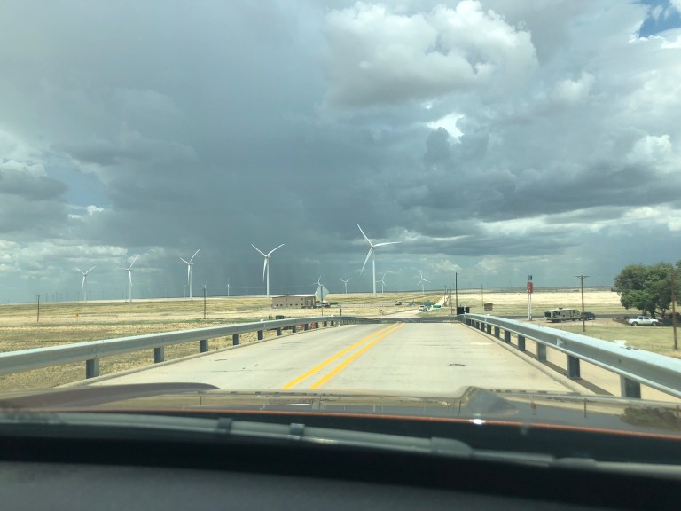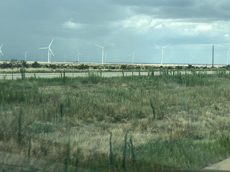 Amazing to us was the huge wind farm just west of Amarillo. Here’s is what Wikipedia says – we think there are more like 1,000 turbines! Yes, it’s very un-Texan to under-exaggerate.