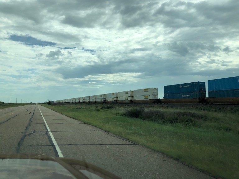 We left Amarillo and drove to Fairview Oklahoma on Route 60. This takes you through the true USA landscape of fields of prairie, rolling red hills, old cattle drive trails, the smallest of towns (think “Cars” movies), freight trains traveling with goods, grain elevators and oil rigs. Willie Nelson’s rendition of “The City of New Orleans” unexpectedly erupts on Sirius/XM; perfect road music for the day. There is never a lot of traffic and the road is good driving at interstate speed limits.
