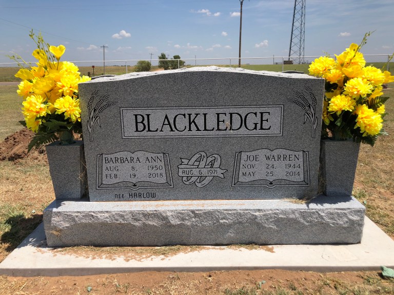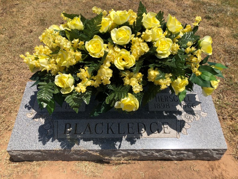 The members of both sides of the family of Joe & Barbara Blackledge arrive and visit at the Community Center. Then we all drive out to the cemetery and thankfully it has stopped raining. I lead a short service at the cemetery while Steve and Barbara’s brother Wayne, commend their ashes to our Heavenly Father through mixing them in the soil of their native Oklahoma. Dust to dust, ashes to ashes.