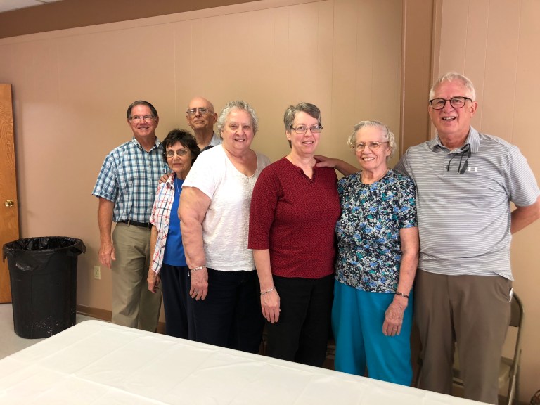 Afterwards everyone heads back to the Community Center in Jet where the ladies of the community have prepared a delicious spread of food – barbecue beef, green beans, scalloped potatoes, pasta salads, cole slaw and FOUR different home-made desserts. So nice and hospitable for this small town of 250 people.
