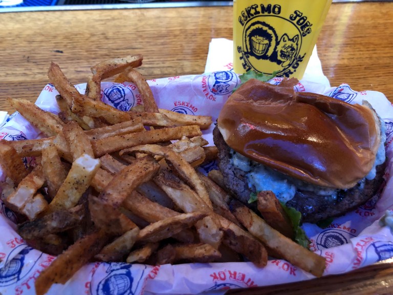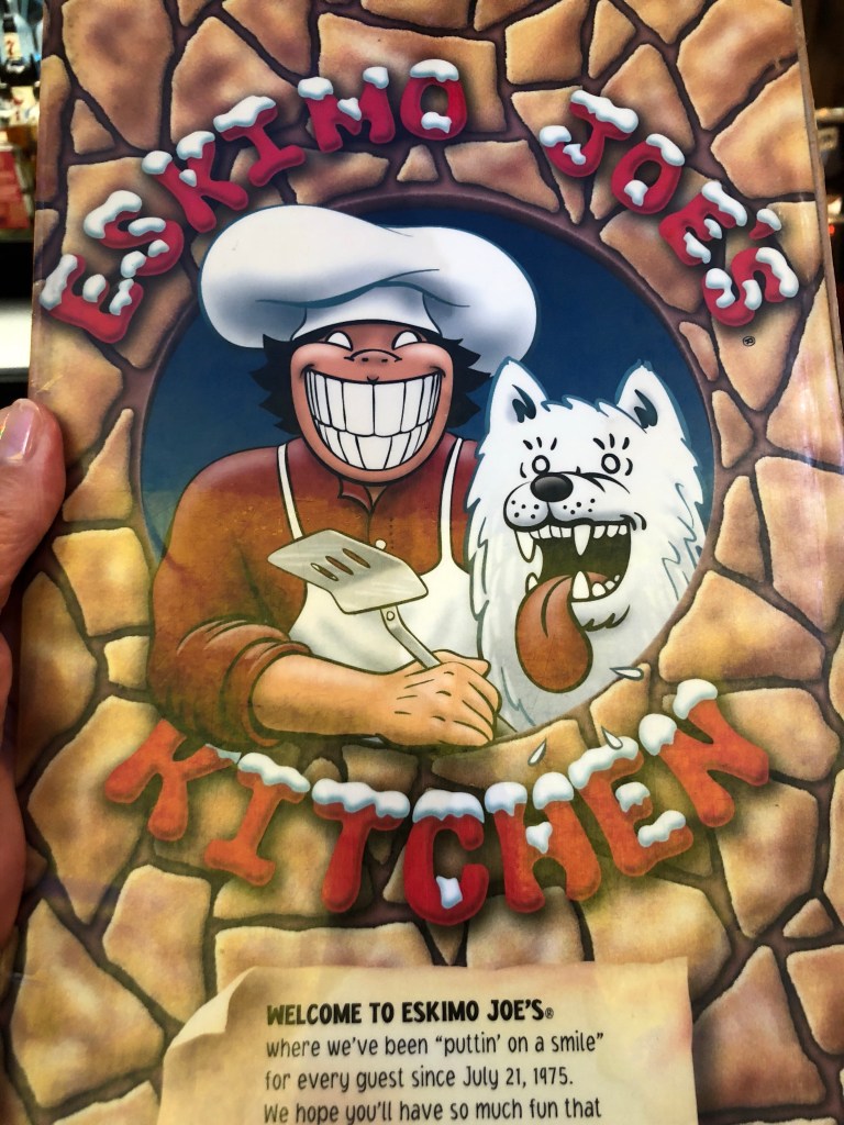 We leave their house and drive to Eskimo Joe’s, a famous bar and grill in Stillwater in the midst of Oklahoma State University. Of course, burgers and a beer are in order. Perfect ending.