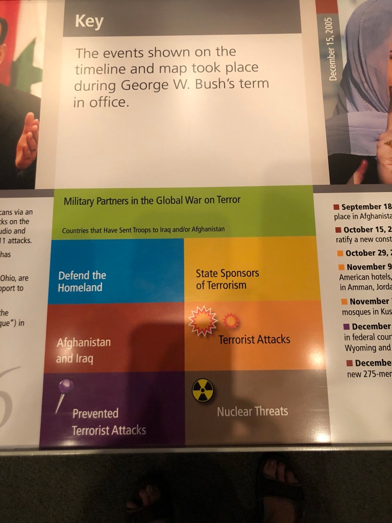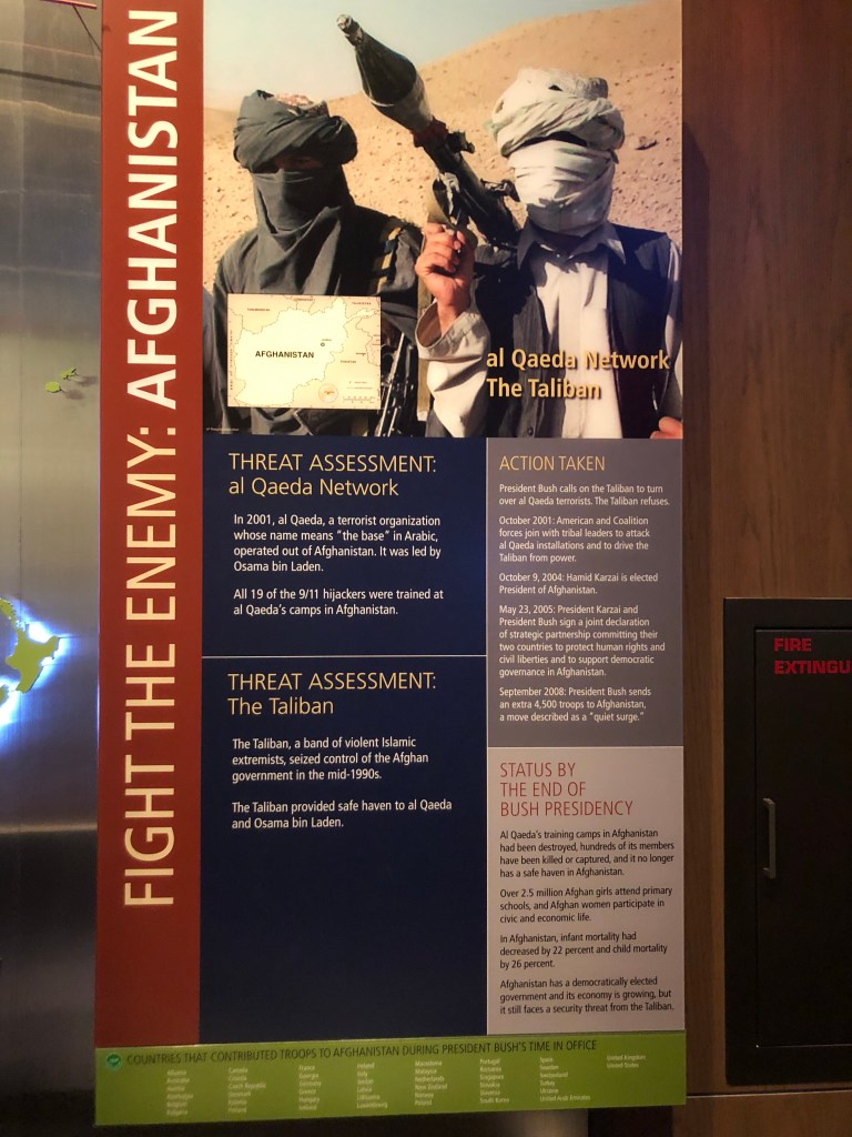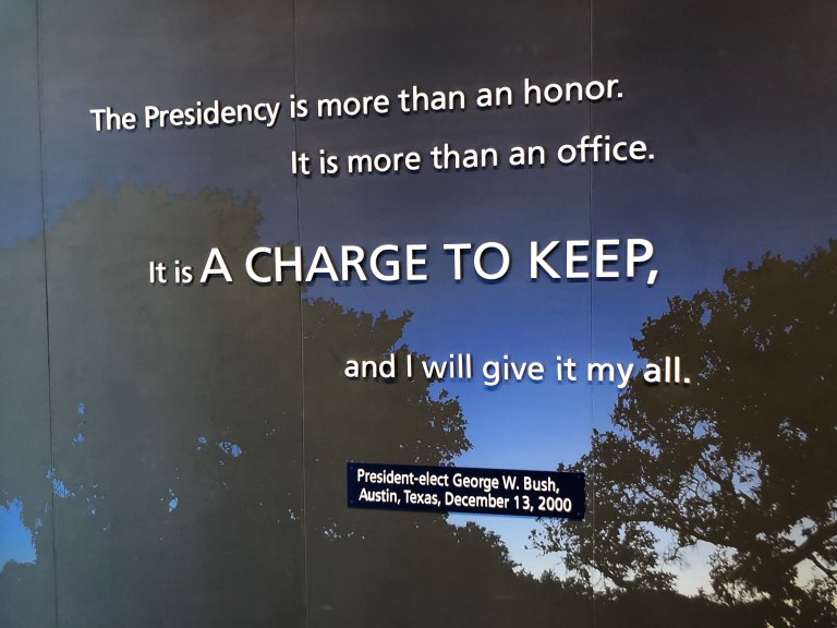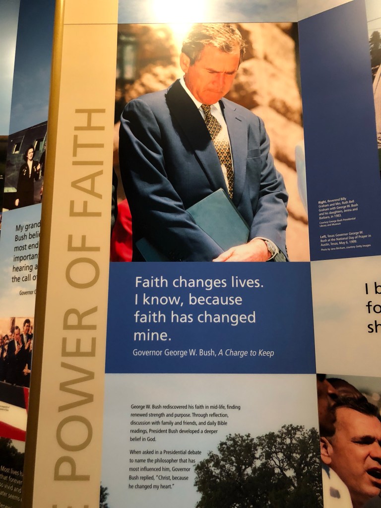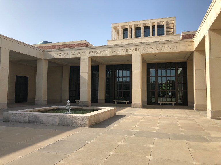 The next day, a short drive and we are on the campus of SMU where the George W. Bush Presidential Center is located. The library is fairly easy to find from where we are staying and yet when you get on campus finding parking was interesting. We parked and walked a couple of blocks in the 95 degree Texas heat. However, there was parking right across the street but the signage wasn’t apparent.