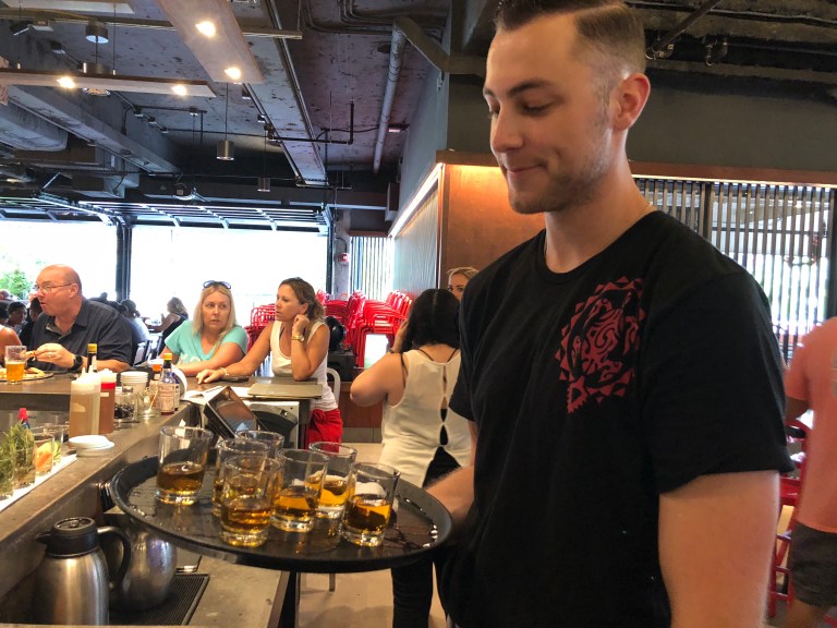 We took a bus ride to Ala Moana Shopping Center. It was very busy with shoppers even though many of the stores were closing at either 2 PM or 4 PM. Like in Florida, the shopping mall is a great place to kill some time in a Hurricane Warning with the local kids off of school and the tourists not able to enjoy the sun due to the drizzly weather. Buses are stopping at 6 PM so we head back to Moana Brewing to Hurricane party with the rest of the people waiting.