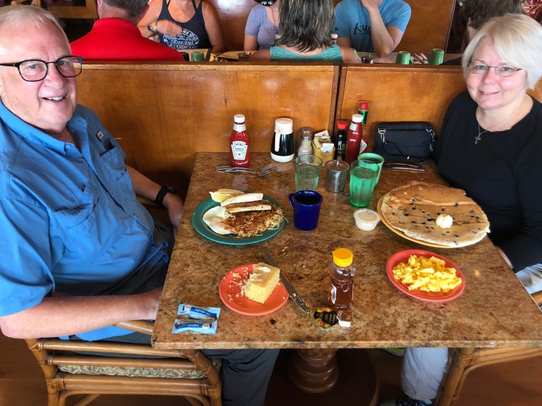 Today, we travel three different flights to home arriving tomorrow at noon. Guess we better stop at the Kountry Kitchen in Kapaa for breakfast!