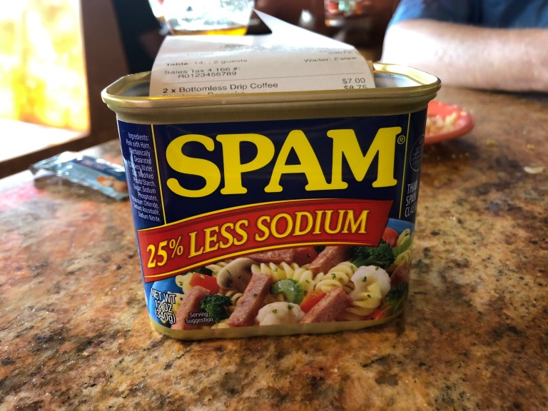 I couldn’t believe the size of my pancake! I love that they deliver the bill in a SPAM can!
