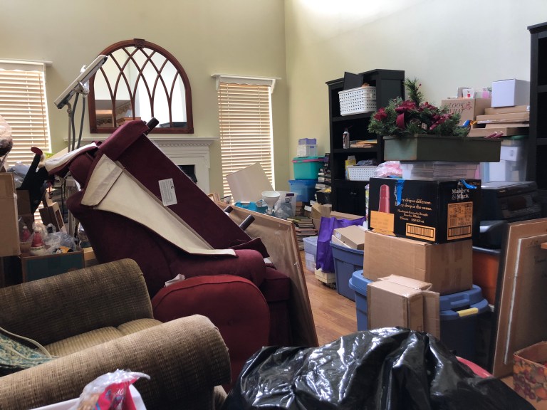 Packed 86 bins, stuffed 18 large trash bags and 16 boxes for Goodwill to pick-up at the house along with all the remaining furniture (over 50 pieces)