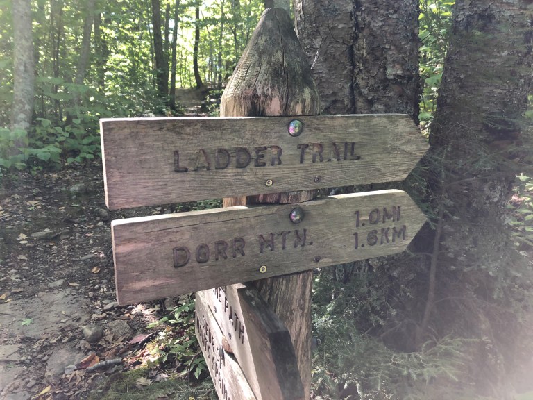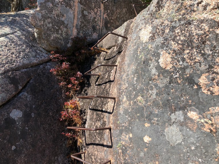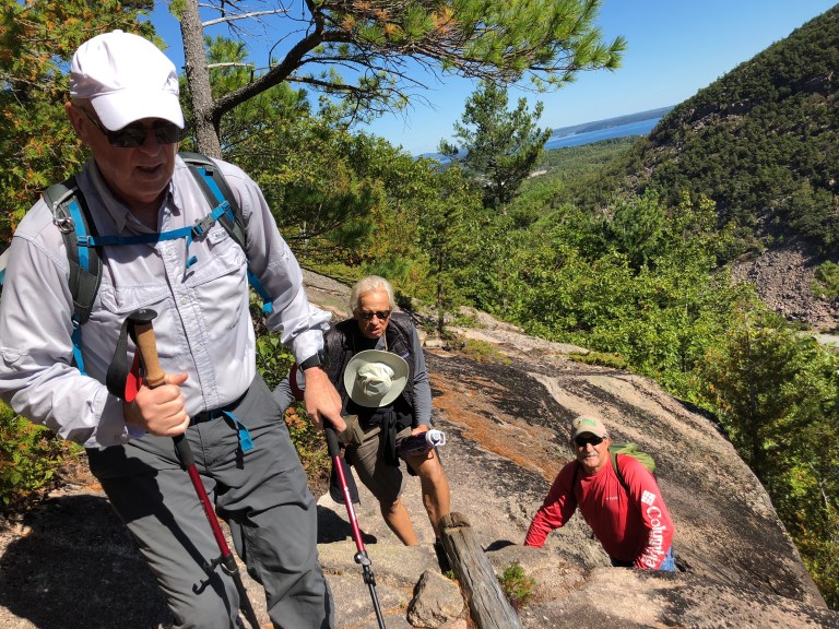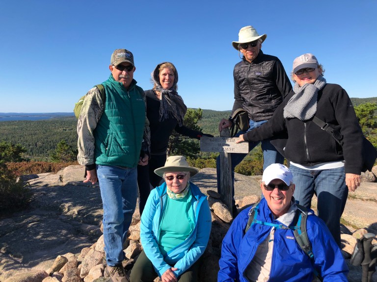 Sunday we start out by hiking the Kane Path which is along the Tarn and has some good boulder climbing. It’s good for getting your hiking brain in gear and testing your shoes and balance. When we reach the intersection with the Ladder Trail up to Dorr Mountain and we mention we have never done this path, everyone says – come on – we can do it. Yikes! Steve and I have never done this path before because it is known to be difficult and strenuous. How does 1200 steps and several ladders to climb around huge boulders on the side of a mountain sound for a hike? The Ladder Trail is the oldest hike in Acadia and leads to a trail that will take you along the side of Dorr Mountain and up to the top. Yes, it was very challenging and fortunately we are all in good enough shape to do it. We finish by coming down the Emery Trail back to the parking lot. It takes us 3 hours and we all agree it was pretty amazing. Time to return to the house and grab some lunch.
