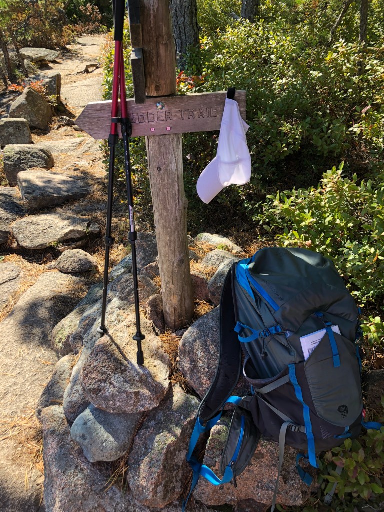 Next, we hike a new trail along the Somes Sound that our friend’s friend told him about -Flying Mountain. A very nice hike with stairs, roots, boulders and then a beautiful view of Somes Sound. Hiking down you come to the shoreline of Somes Sound. We hear loons calling and enjoy the last part of the hike which is a fire line road back to the parking.