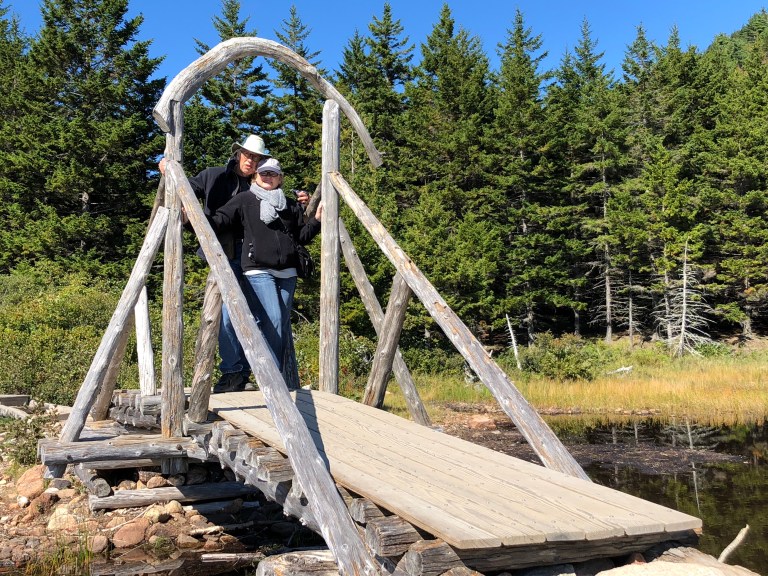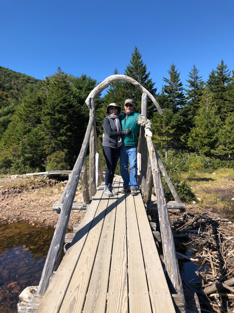 Stop at Thunder Hole, hike Gorham Mountain trail and then to Jordan Pond for popovers and after stuffing ourselves a walk on the trail around Jordan Pond. The temperature never seems to warm up…..bbbbrrrrrr much above 50. For us Florida people, this is winter weather!