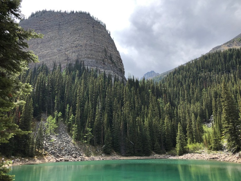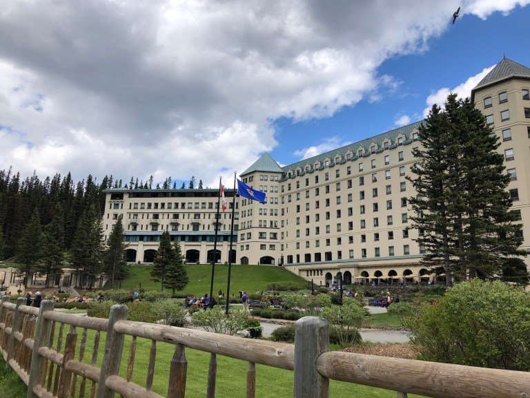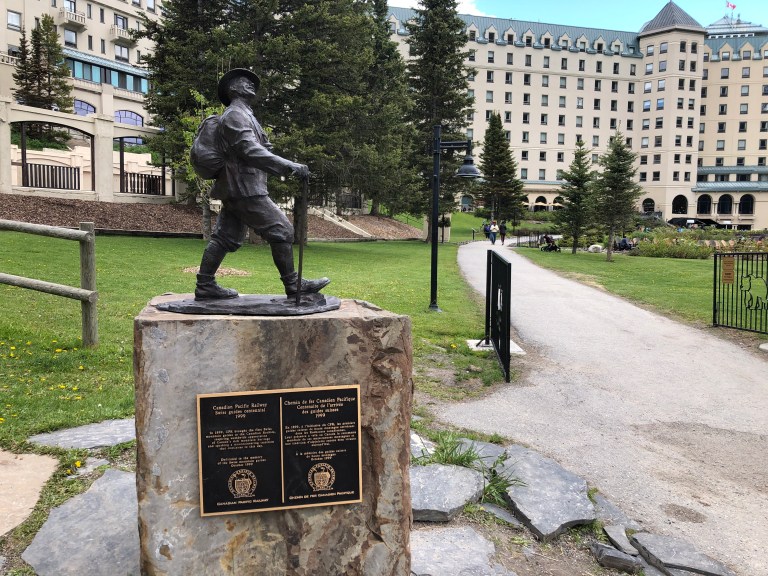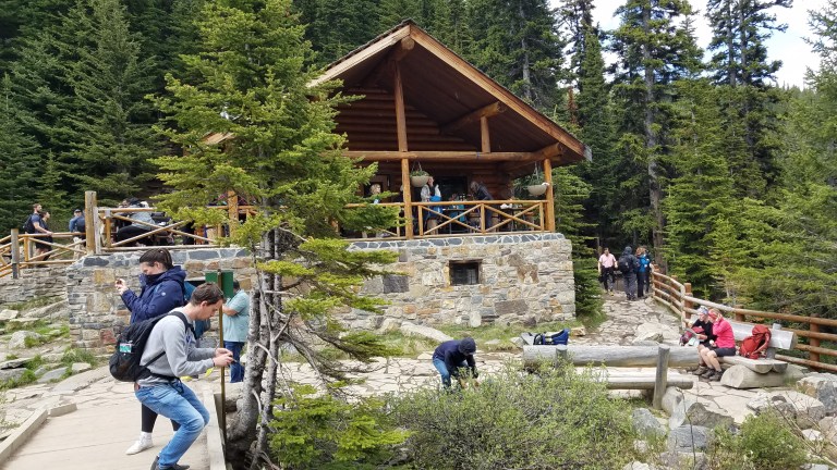 The crowds of people at Lake Louise were similar to those viewing the Grand Canyon or the Mendenhall Glacier, in Alaska, in high season. Everyone was polite because they, like us, wanted to see what has been described as something so beautiful. It IS beautiful and if you’ve never been anywhere like this, it is also a must. Much history here too. Switzerland hiking guides came out and helped with the trails and the railroad through the mountains. Instead of hiking along the side of the lake, we took the recommendation from our hotel concierge to hike up to Lake Agnes and the Tea House.