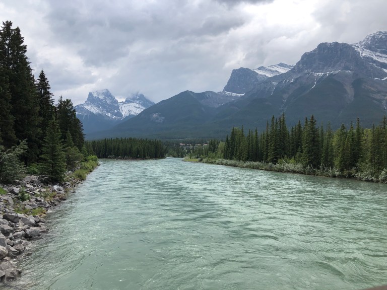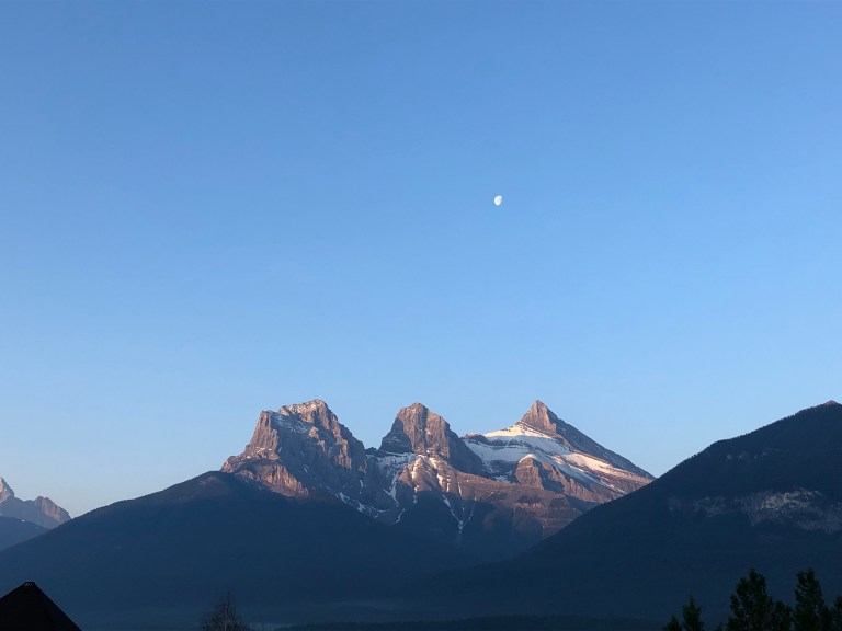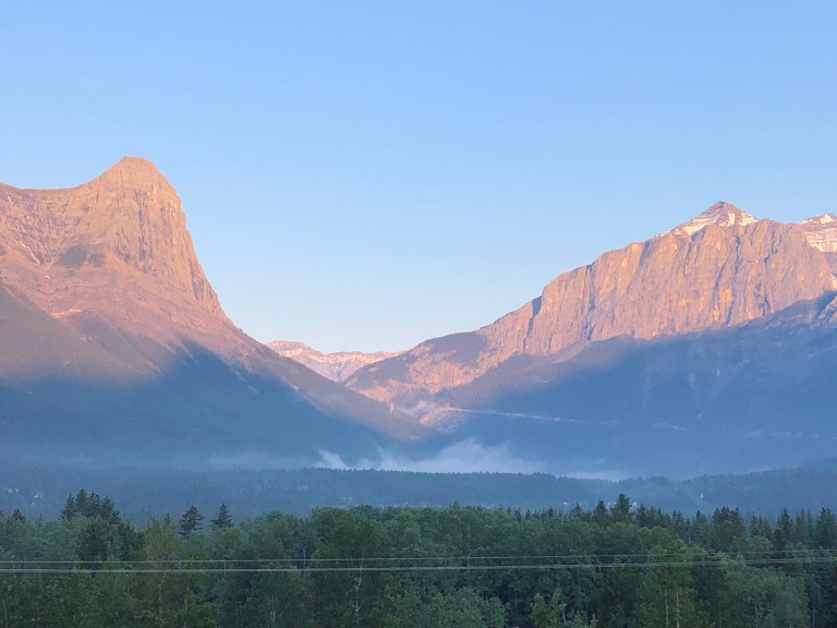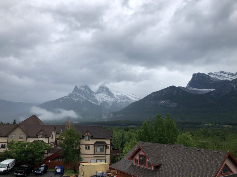 Everyday when we arise, the view out the window of our hotel has a beautiful display, the mountains of Canmore. They change with the weather and light. Feeling much gratitude for God’s creation. Steve captured a couple of these with the vivid colors. Awe struck!