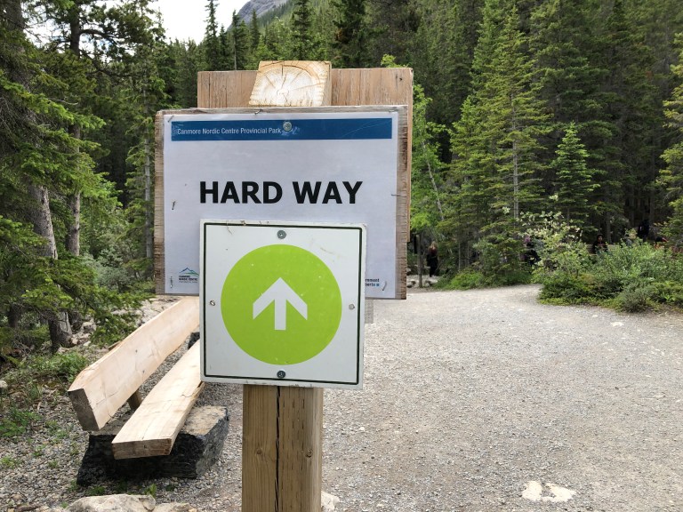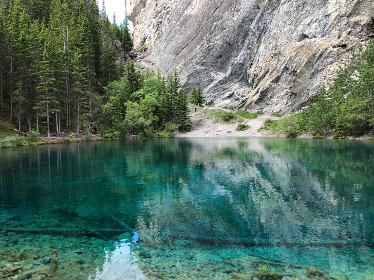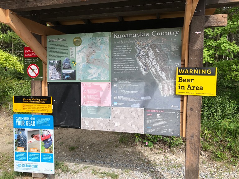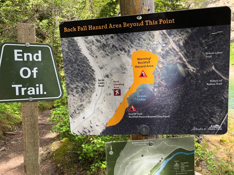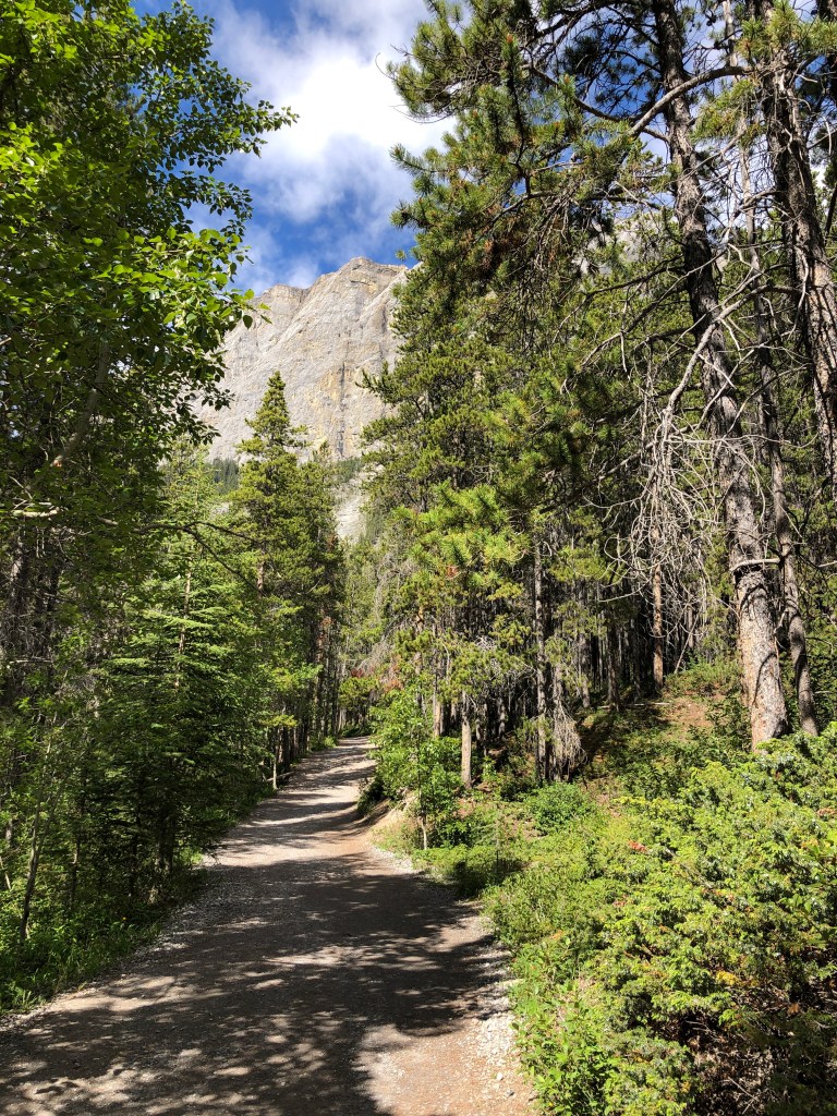 Our friends are taking an adventure on bicycles today. There are many, many biking trails in and around Canmore, plus one that actually goes all the way to Banff. This town wants people to be outdoors! For us – that means hiking. We have a short drive to the head of Grassi Lakes Trail; short especially if you don’t get lost and have to backtrack. It’s an easy hike and there are lots of families and school children enjoying a field trip hiking up to the lakes area.