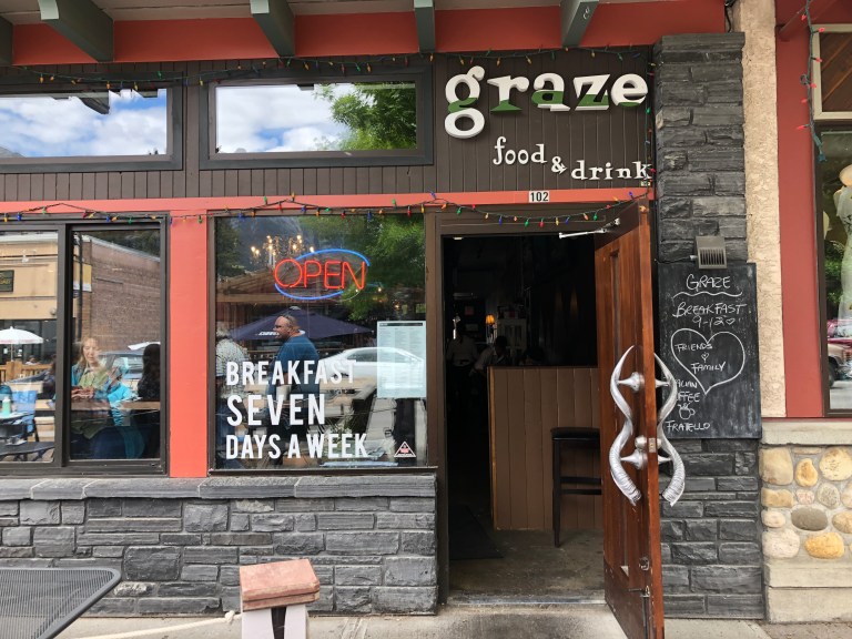 Next stop: Lunch in Canmore at The Graze and back to the hotel to relax and enjoy the afternoon. We pass a statue of a Coal Miner – can’t forget that is what helped start the town of Canmore.