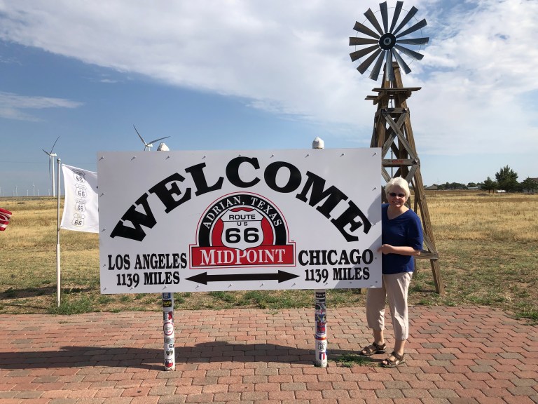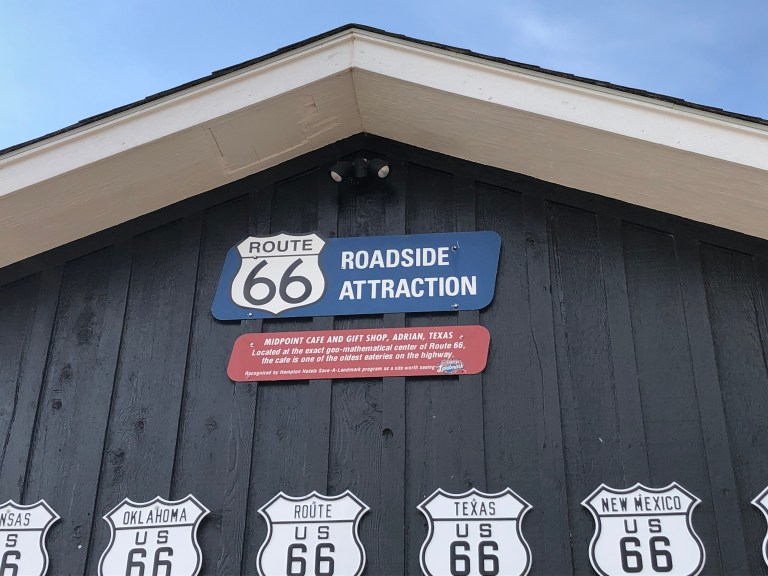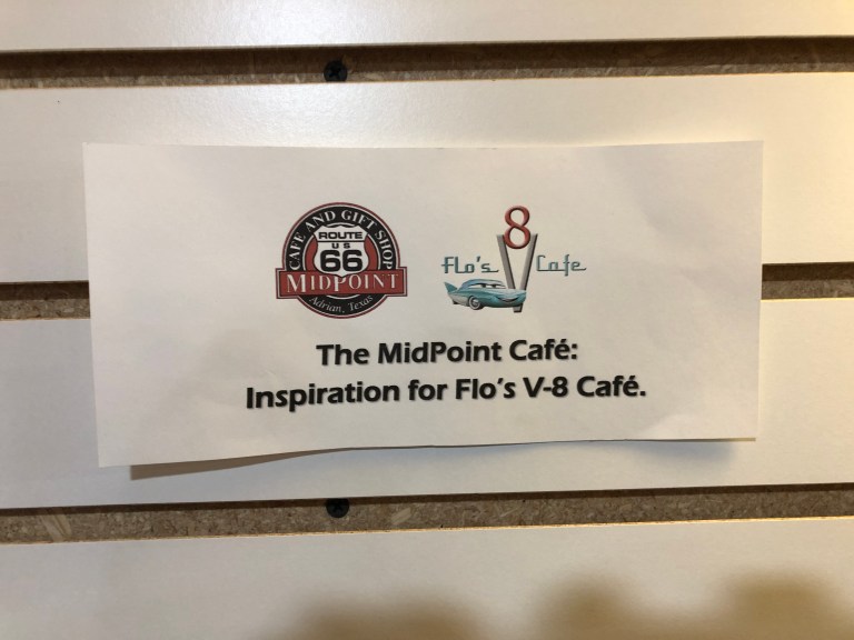 Further down the road, we always stop at the Midway Cafe. They are now claiming that they are part of what the Cars movie Flo’s Cafe is based on……a stretch. A touring motorcycle group from Europe is eating in the cafe. The most people we have ever seen in the cafe eating. Fun stop.