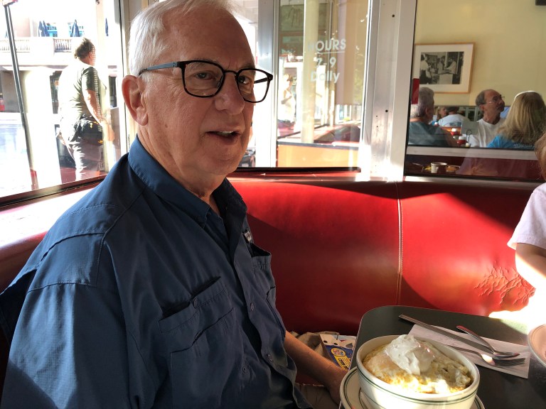 Steve enjoys Papa’s Fritos – a Santa Fe gut bomb. A whole layer of roasted potatoes, topped salsa verde, smothered by two eggs, and finished with sour cream on top. Papa enjoyed it all! This is a breakfast that lasts all day.