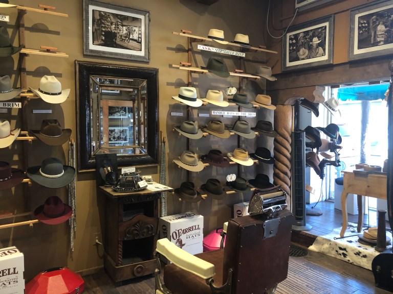 The best fun of the day was purchasing a hat at the O’Farrell Hat Store. They make custom hats at this store. Luckily (I think) I find one right off the shelf that is my hat (or is it head?) size. All they had to do is fit my head and then modify with an internal sweat band to create the snug fit that keeps the hat from blowing away in the wind. A nice hat band to go with the hat and I’m all set to walk around Santa Fe in the sun.