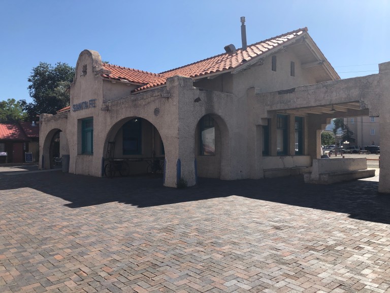 The Railyard building had various home furnishing shops and restaurants. There were trains waiting in the rail yard in front of the old train station, ready to start their journeys north and south, and other shops along the way. This area is along Guadalupe Street on the other side of the Santa Fe River.