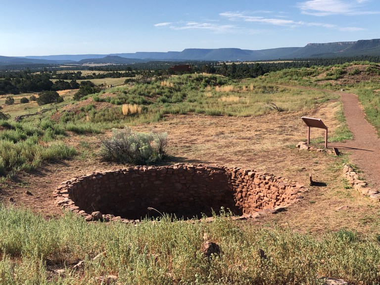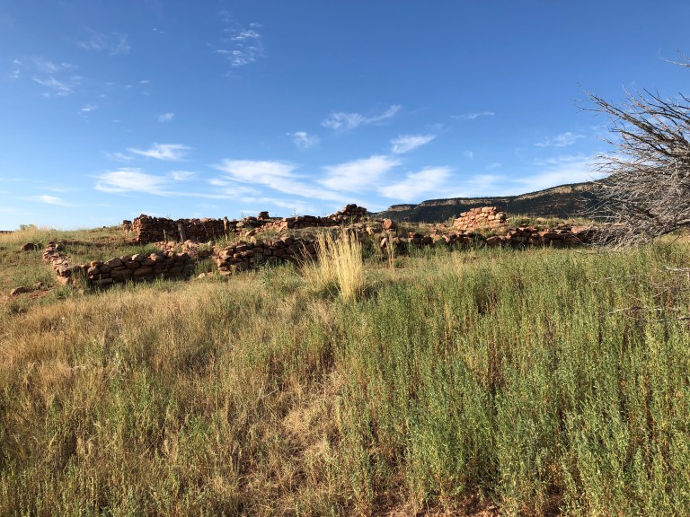 Location location location. The location of this Pueblo is everything. On a trade route between the farming people of the Rio Grande Valley and the Plains Indian hunters, and built on a high ridge near a creek and river. The Pueblo at its largest was four to five stories high and home to 2,000 people.