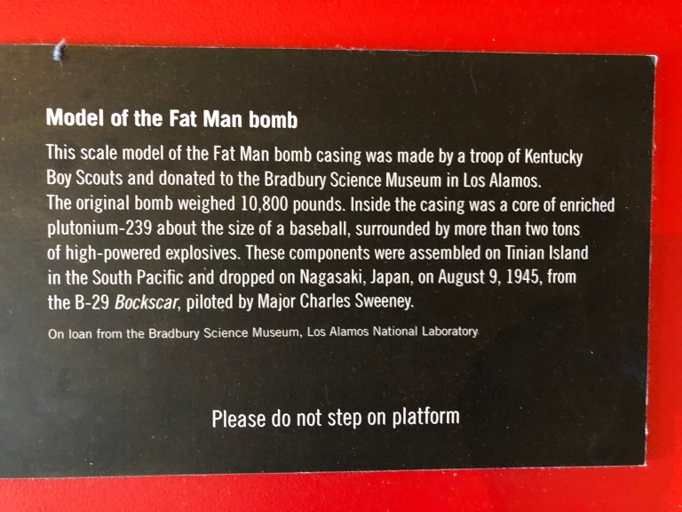 Inside the museum, we explore for two hours one day and another two hours the next day. The displays are well done; the exhibits about the atomic age and the moon landing are fascinating and nicely done. I’ll let some of the pictures tell the story.