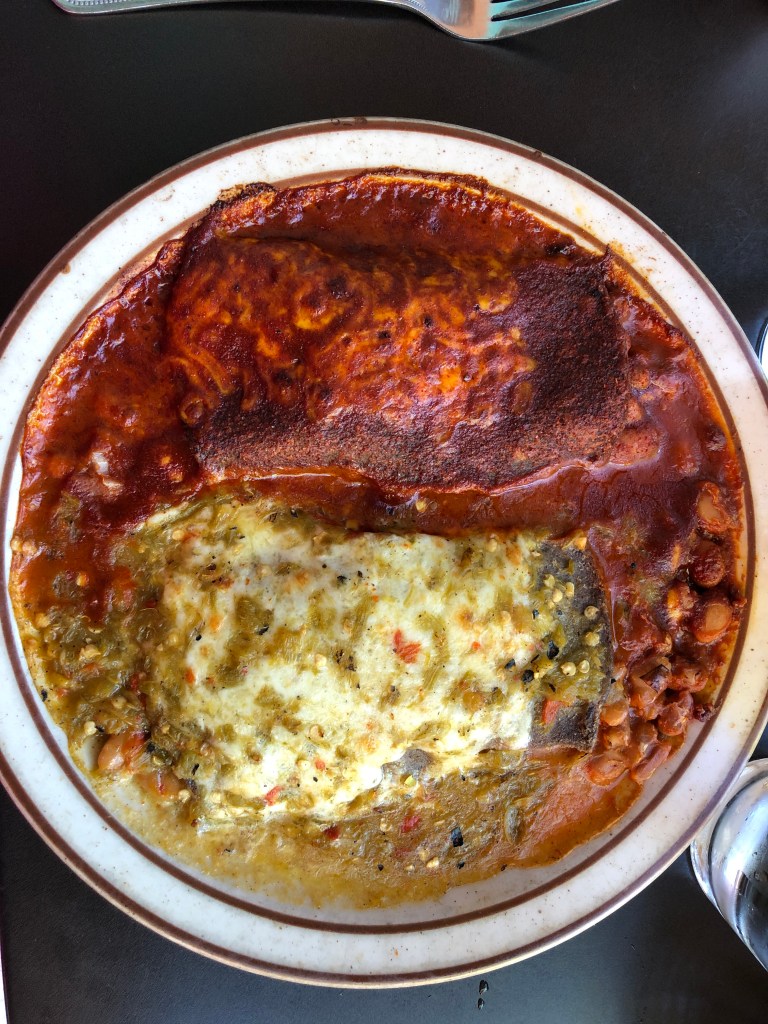After our museum visit, time for some New Mexican food sitting outside at The Shed restaurant. Delicious red and green chile flavors! Tomorrow – hike it off!