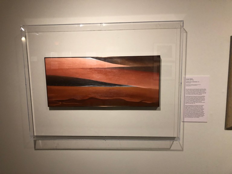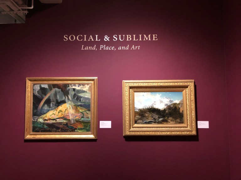 Inside the first gallery the exhibit is entitled: Social and Sublime: Land, Place and Art. Well-known artists, somewhat traditional – Thomas Moran, Angel Adams, Georgia O’Keefe.