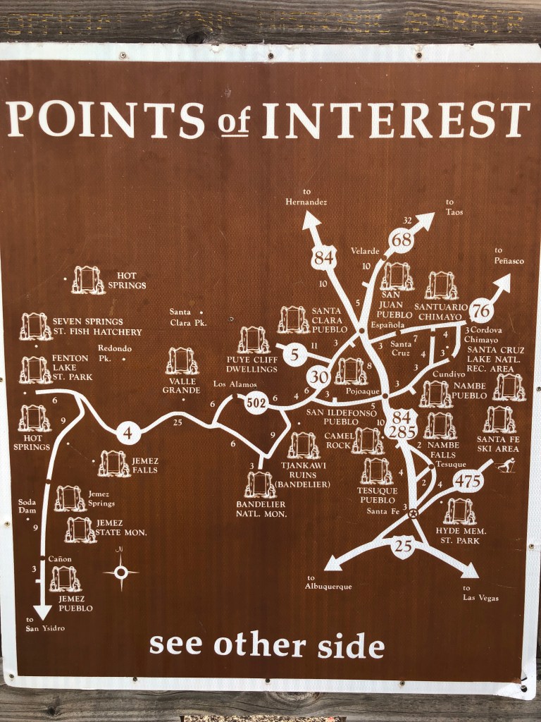 Right around the corner is Bandelier National Monument and Valles Caldera National Historic Site, with a beautiful drive along State Route 4 to Jemez where there is a Pueblo, State Monument, the Falls and the Springs. We have been but not today.