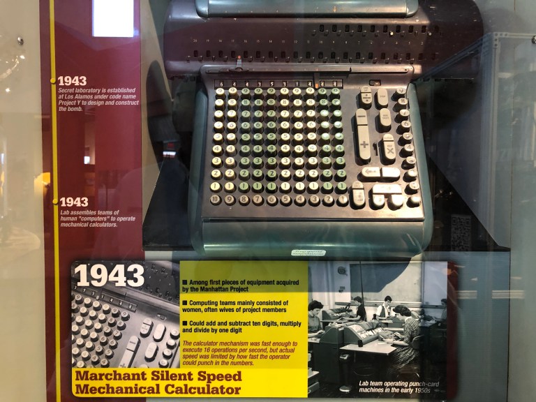 The well-thought displays tell the story of how the lab was started during the Manhattan Project and continues today with research and testing. If you are a science geek, this is the museum for you. There was so much to learn our brains hurt. We are ancients and we think the things people are doing here at Los Alamos are incredible. We will go back with our thinking caps on. A fascinating learning experience. A bonus for Steve: He saw the style of rotary calculator he used in 1969 at Kerr-McGee Oil Company to convert pipeline liquids and gases to standard volumes. Yes, we are ancients.