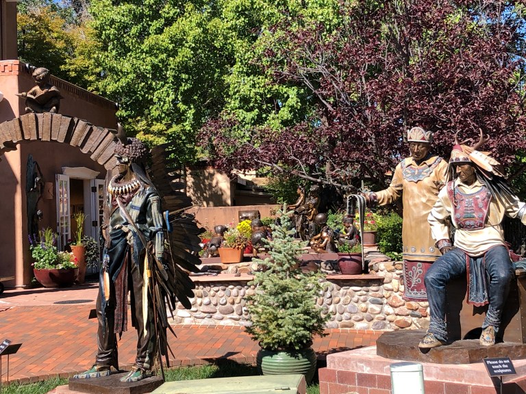Bataan Memorial and the eternal flame. A wonderful memorial. Then, the tour drove us up Canyon Road and stopped to see some beautiful sculptures.