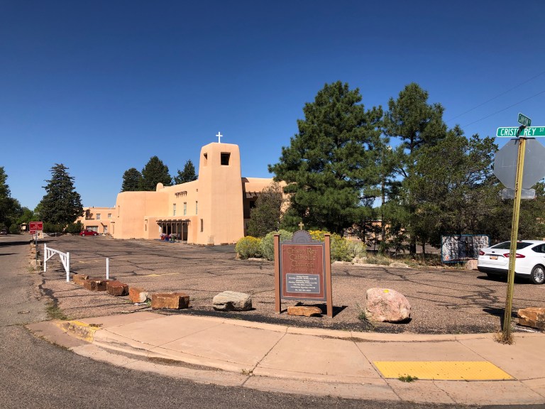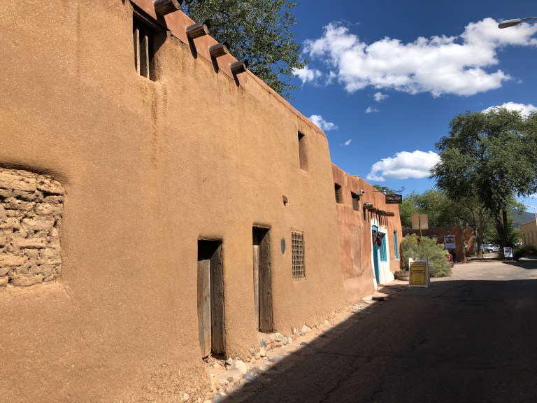 Our afternoon is a Beer & Art Tour. Cross the Santa Fe River towards the San Miguel Mission Church where we start our tour. Wait, we start our tour with a beer at the Upper Crust Pizzeria right next door to the San Miguel Mission Church.