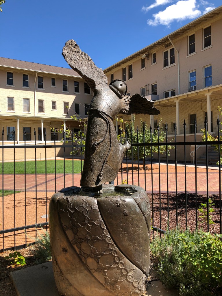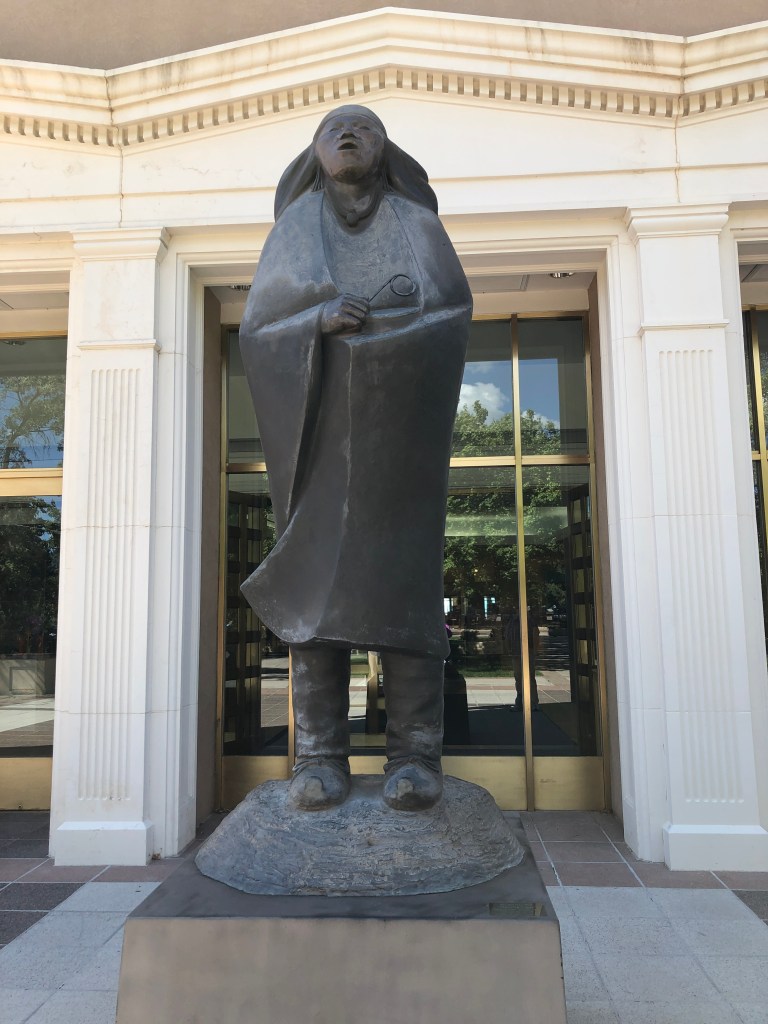 New Mexico became a state in 1912. This State Capital building was completed in the 1960’s and renovated in 1992, making it the third newest capital building behind Hawaii and Florida, and one of the few without a dome! In the front are some beautiful scuplture.
