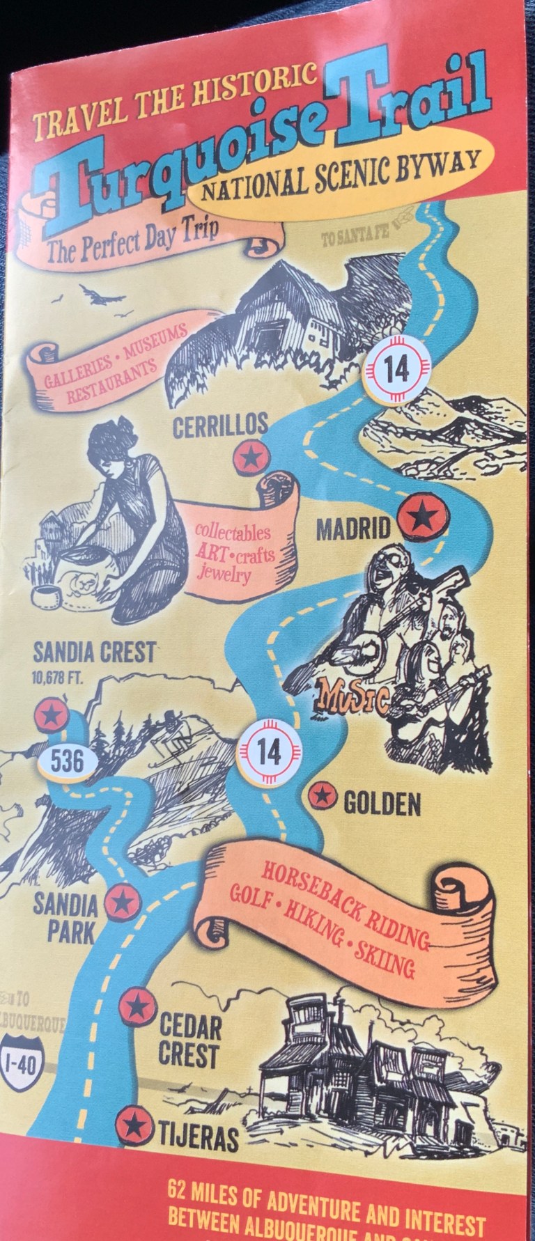 On Friday, we load the car, have breakfast at The Plaza Cafe one last time (and our friends have now experienced the Santa Fe Breakfast Triple Play – The Plaza, Pasquales, and Tia Sophia’s) and start the drive to Albuquerque. We decide to take the Turquoise Trail, a National Scenic Byway – State Route 14.