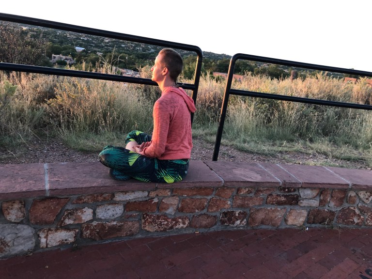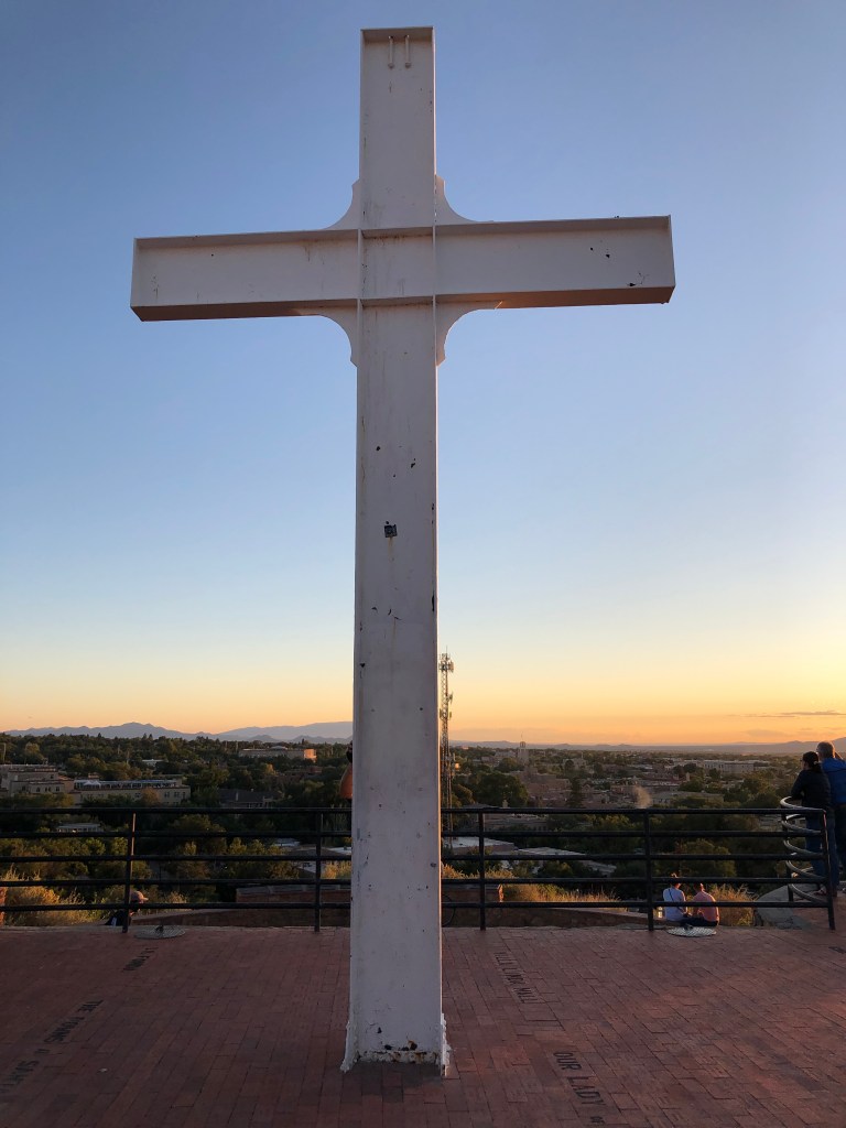 Wednesday night, we climb up to the Cross of the Martyrs at Fort Marcy Park to watch the sunset. We haven’t seen one the entire month we’ve been in Santa Fe. Thanks to our friends we make the effort!