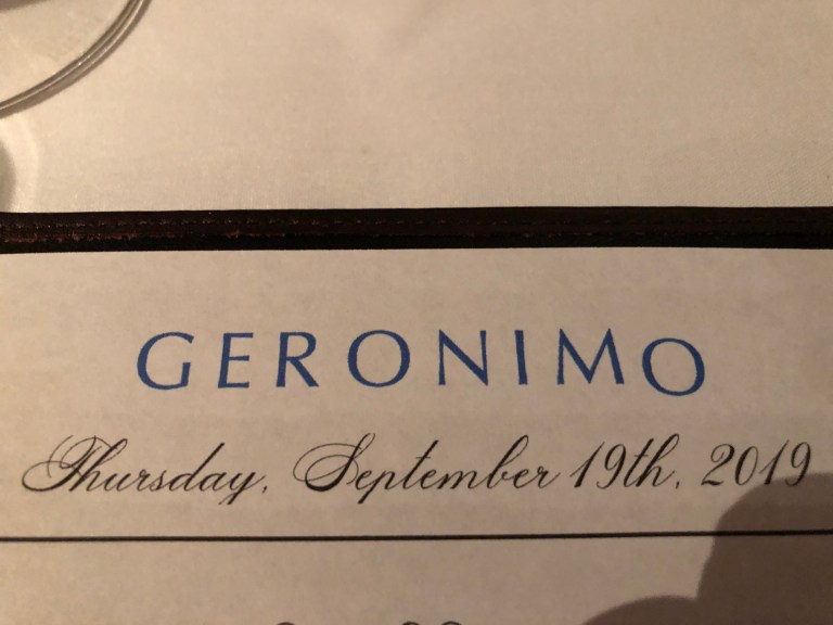 Dinner at Geronimo – the best restaurant in Santa Fe. We’ve been saving this meal for sharing with our friends. An outstanding dinner with interesting foods and tastes. I had the New Mexican Four Corners Grilled Rack of Lamb. I was intrigued since having been to Four Corners, my questions to the waitress is who is raising sheep there? She said the lamb came from a Native American farm in Northwest New Mexico near the Four Corners. Truly the lamb was tender and delicious – the best I’ve ever tasted. Everyone’s dinners were excellent as well. Plus, the desserts were nicely presented and yummy. Great meal!