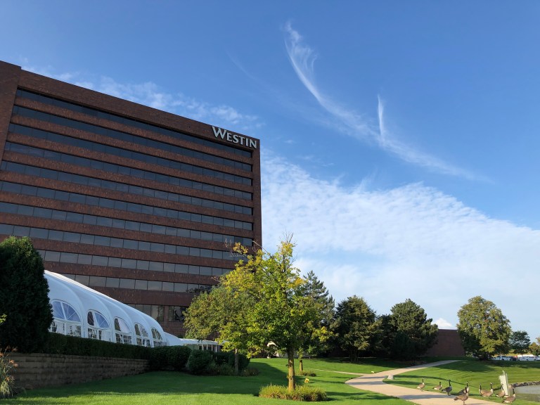A quick stop to visit my sister and her husband in their new townhouse and then settle into our hotel room. The Westin is located convenient to my family and has a really nice walking path winding through office buildings. We forgot how green the grass can be here.