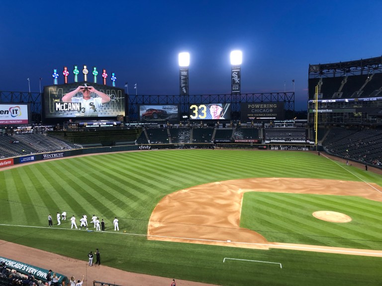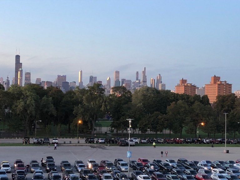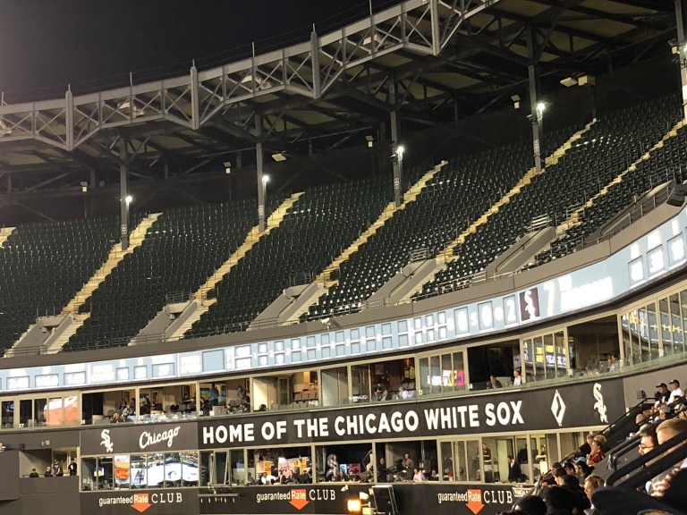 At night, we venture to a White Sox game at the old Comiskey Park now called the Guaranteed Rate Stadium?!!? Everyone still calls is Comiskey. In the first inning the Cleveland hits a Grand Slam and it went downhill from there – final score Cleveland 11 and White Sox 0. The evening was beautiful and our seats were perfect. Since we haven’t been to an outdoor baseball game in a couple of years we forgot how nice a night game can be. This park also has closed off the upper deck seating and moved people down into the stands. And just like the Rays Mascot, Raymond, the White Sox Mascot is kind of weird looking. His name is Southpaw and most people don’t know what he is suppose to be – maybe a dirty sock?