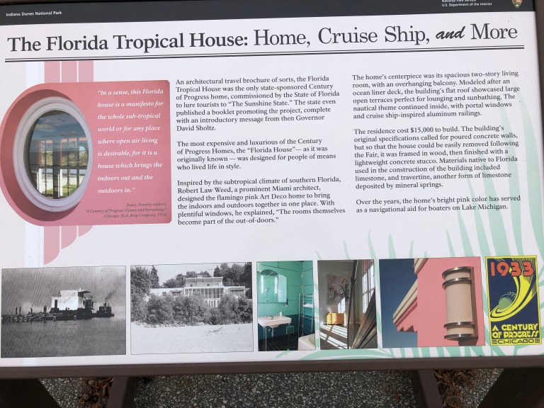 We stopped to see houses from the 1933 World’s Fair, Century of Progress. They are very interesting and people are living in them and restoring them – yep, part of the National Park grounds.