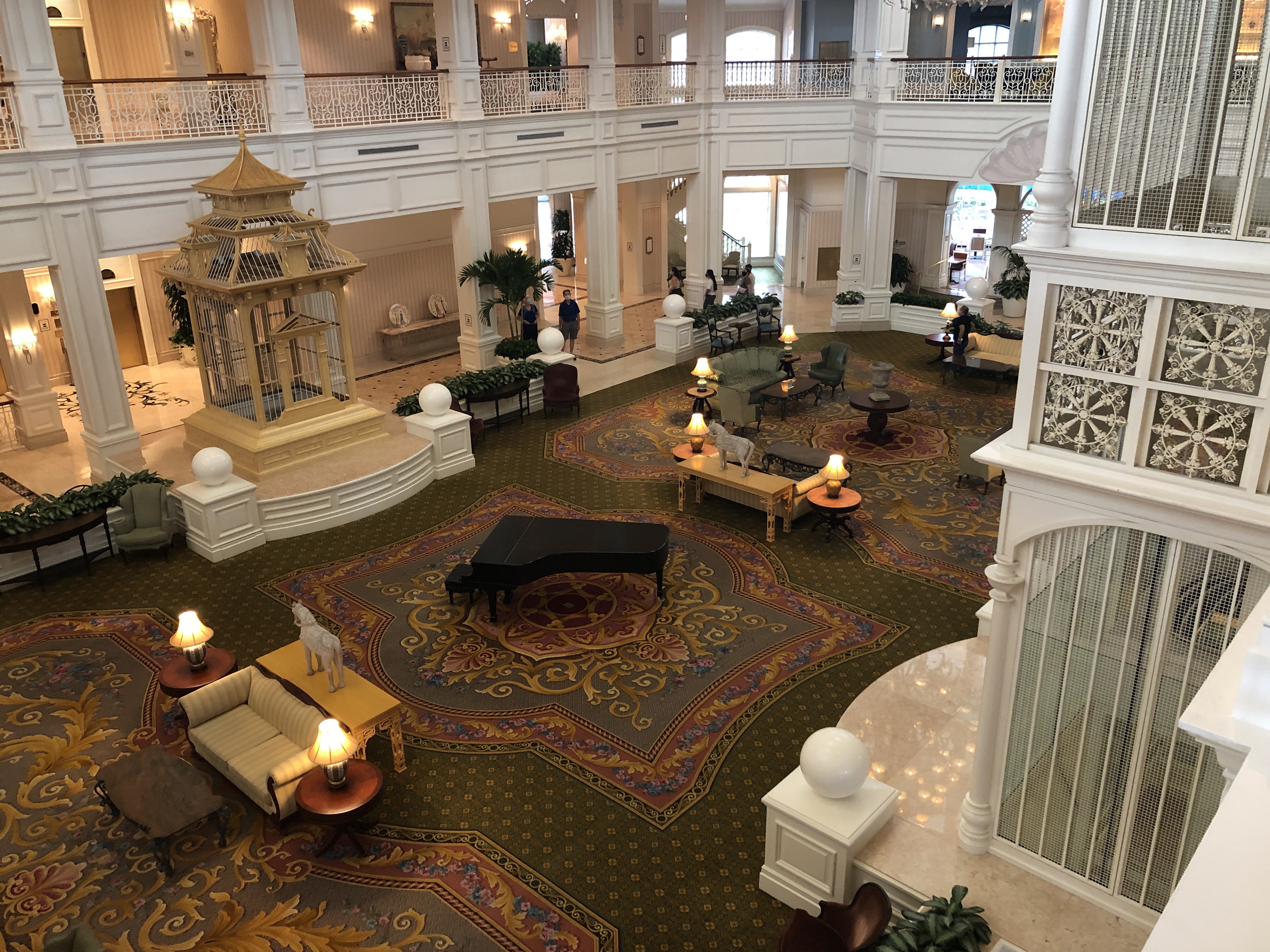 The beautiful Grand Floridian was deserted of people – the children’s pool area was closed, the main pool was open, the lobby did not have their beautiful floral displays, no one at all in the lobby, so strange. The new Enchanted Rose lounge had people 🙂