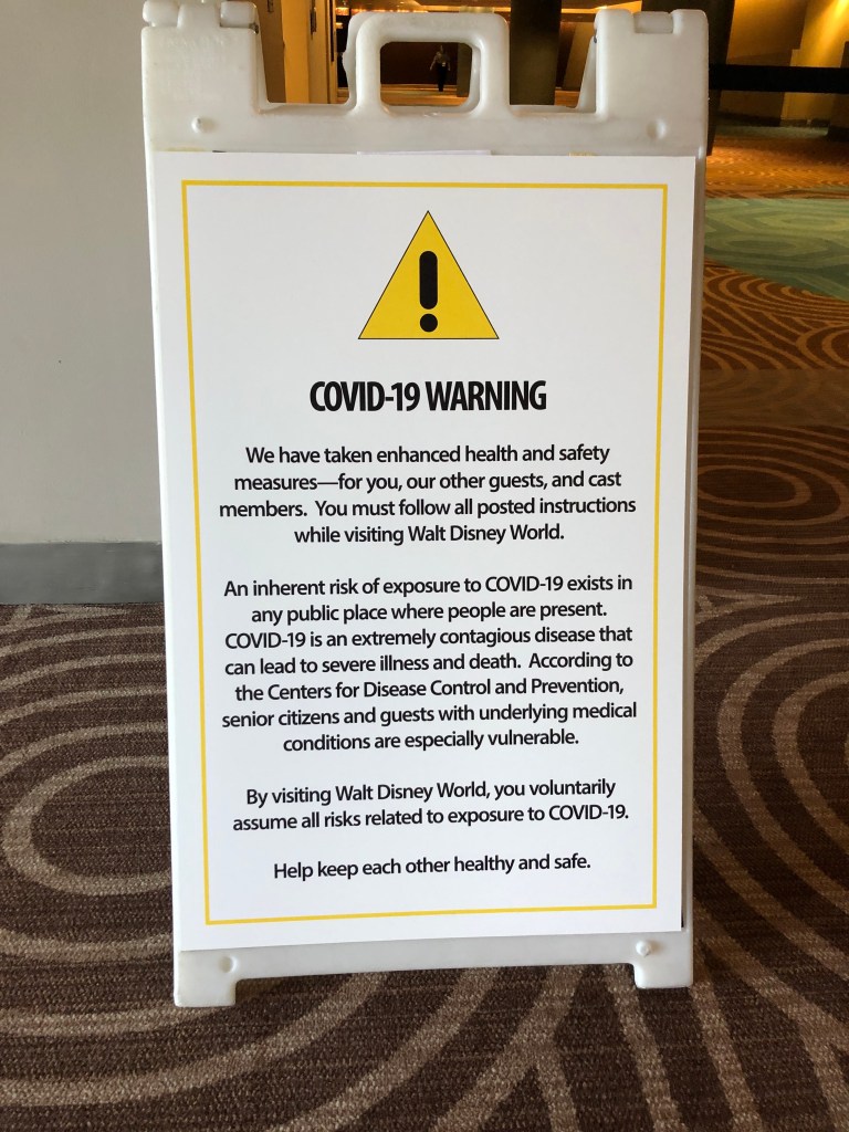 It seemed important to document this unusual Disney experience. Disney World just reopened less than a month ago after closing in March for the pandemic shutdown. As always, Disney impresses us with their amazing attention to detail in everything they do. With Covid-19 still around, they have implemented new processes and procedures through their parks and resorts to ensure a safe experience. Some of these new processes/procedures will probably stay around post Covid. They streamlined some things and encourage courteous behavior throughout the park experience. Here’s an attempt at documenting what we experienced.