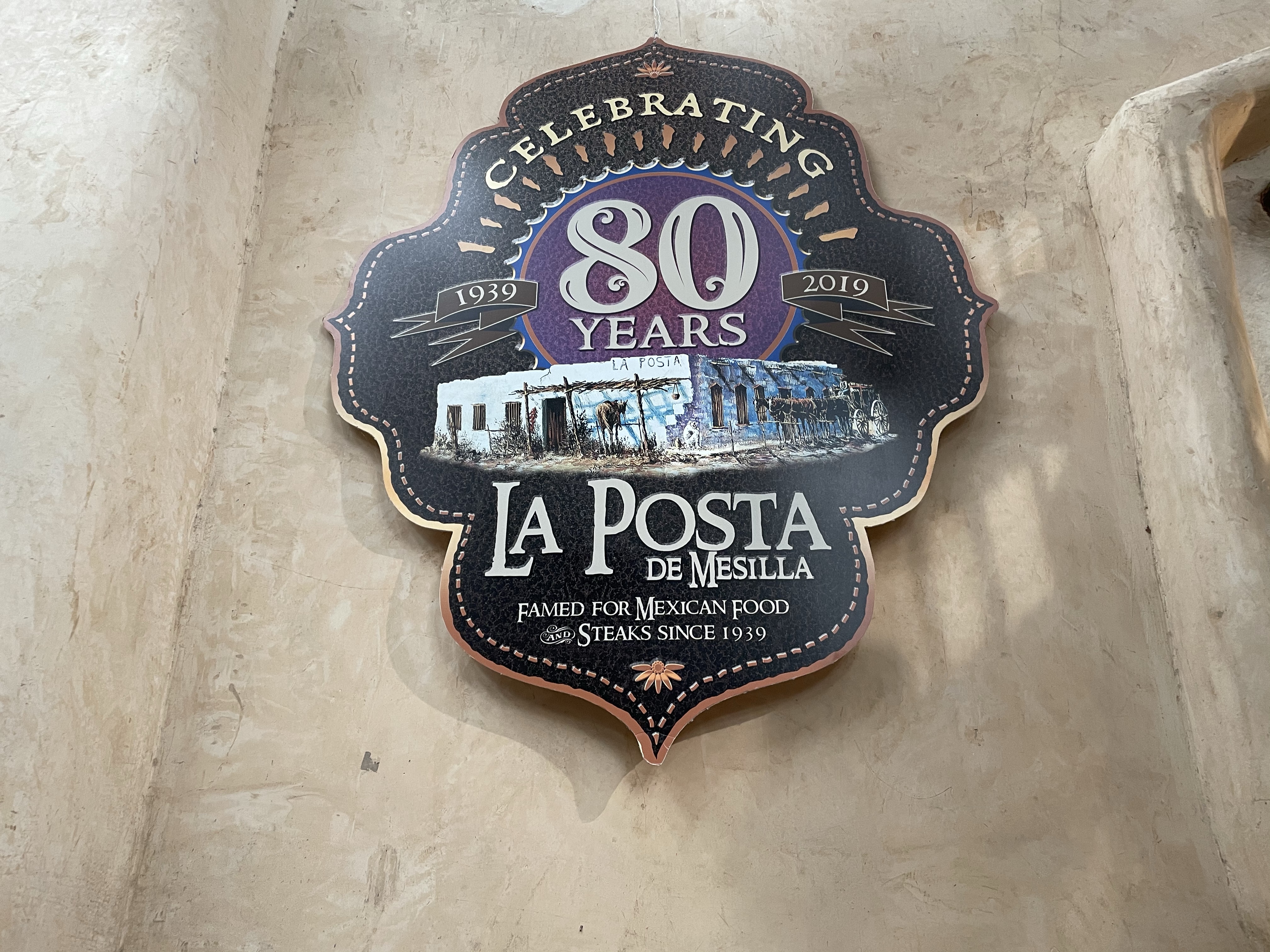 We enjoy a late lunch at La Posta de Mesilla, a restaurant that has been in this town for over 80 years. Excellent food! We think it is much more New Mexican than Santa Fe one of our favorite places.