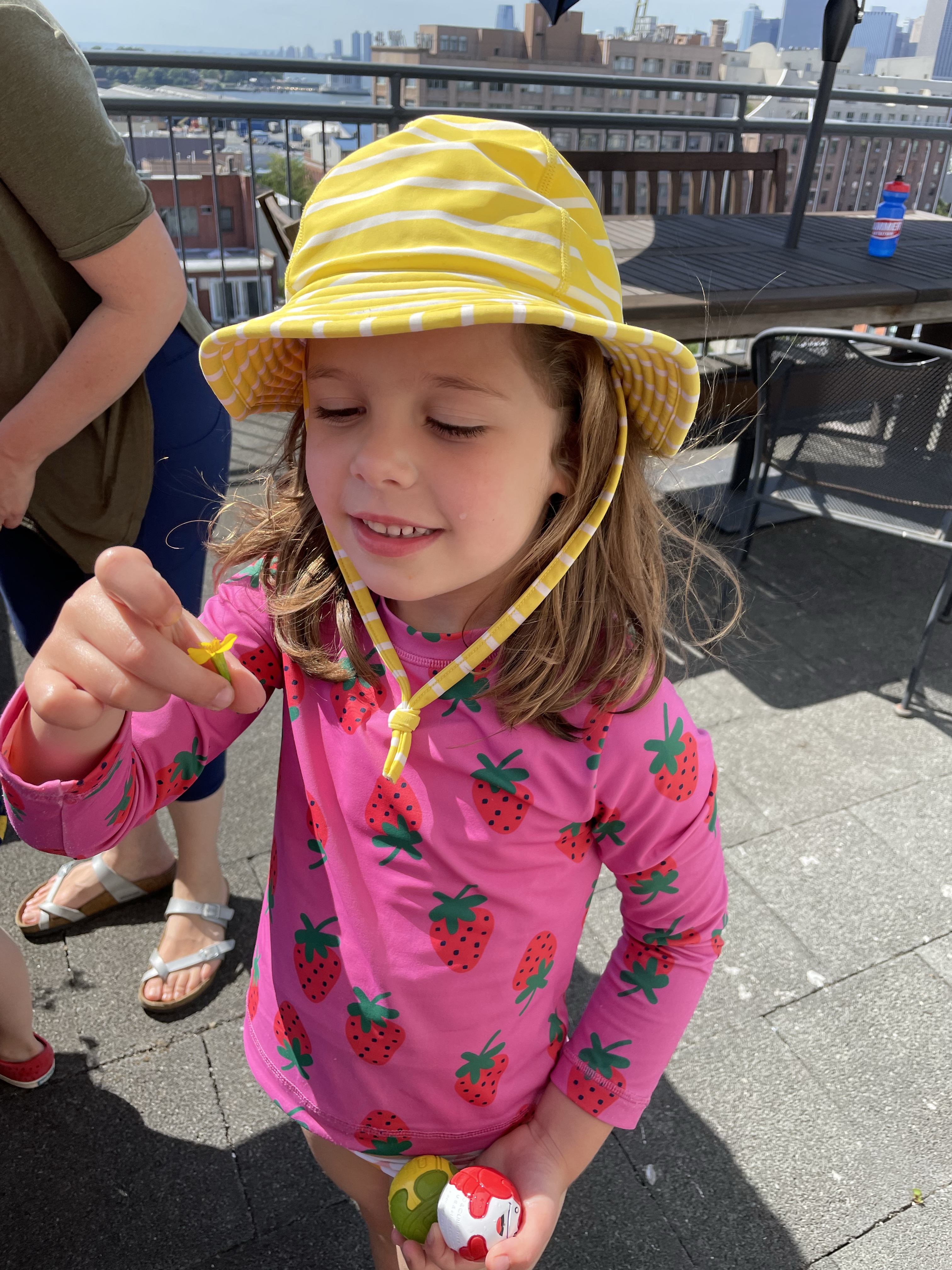 Then some lunch back at home, roof top flower garden weeding, playing in a sprinkle on a rooftop and a movie before we head back to the hotel. Go Tampa Bay Lightning!