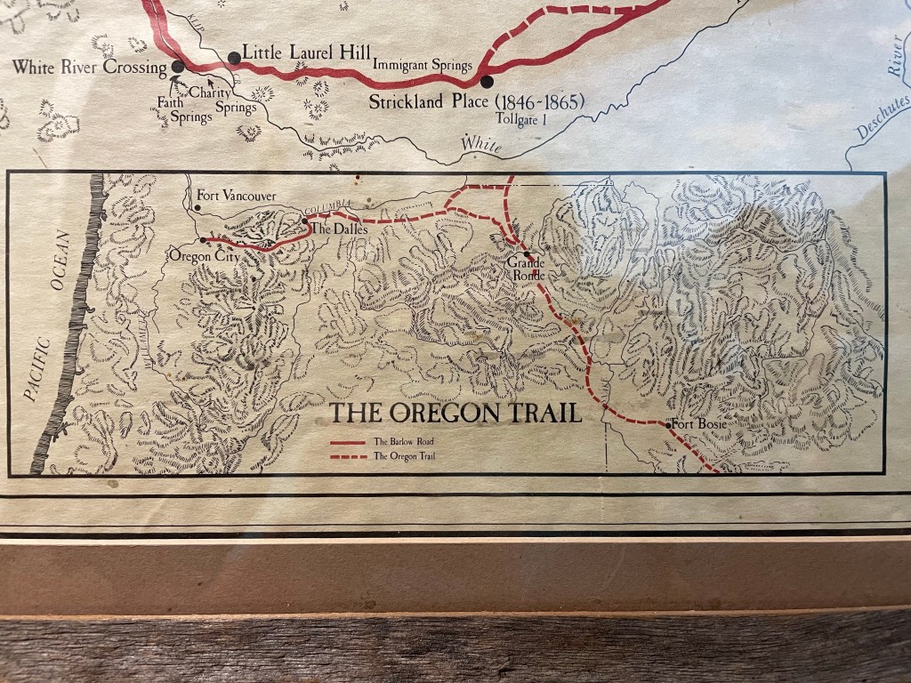 The Dalles was considered the end of the Oregon Trail because there were rough rapids further up the river so people had to either traverse the Columbia River on rafts or they had to go over land.