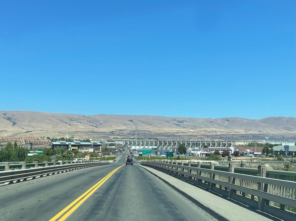 There are also many dams on the Columbia river including one at The Dalles. We catch a glimpse of a dam while driving the interstate that follows along the river.