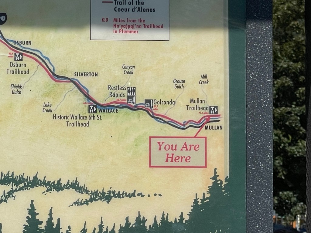 Our tour guide, Connor M, rides in front today and makes a few stops along the trail. We ride to the town of Wallace and continue on the trail to the end in the town of Mullan. With yesterday and today at 65 miles, we have now ridden on our bikes for most the entire trail.