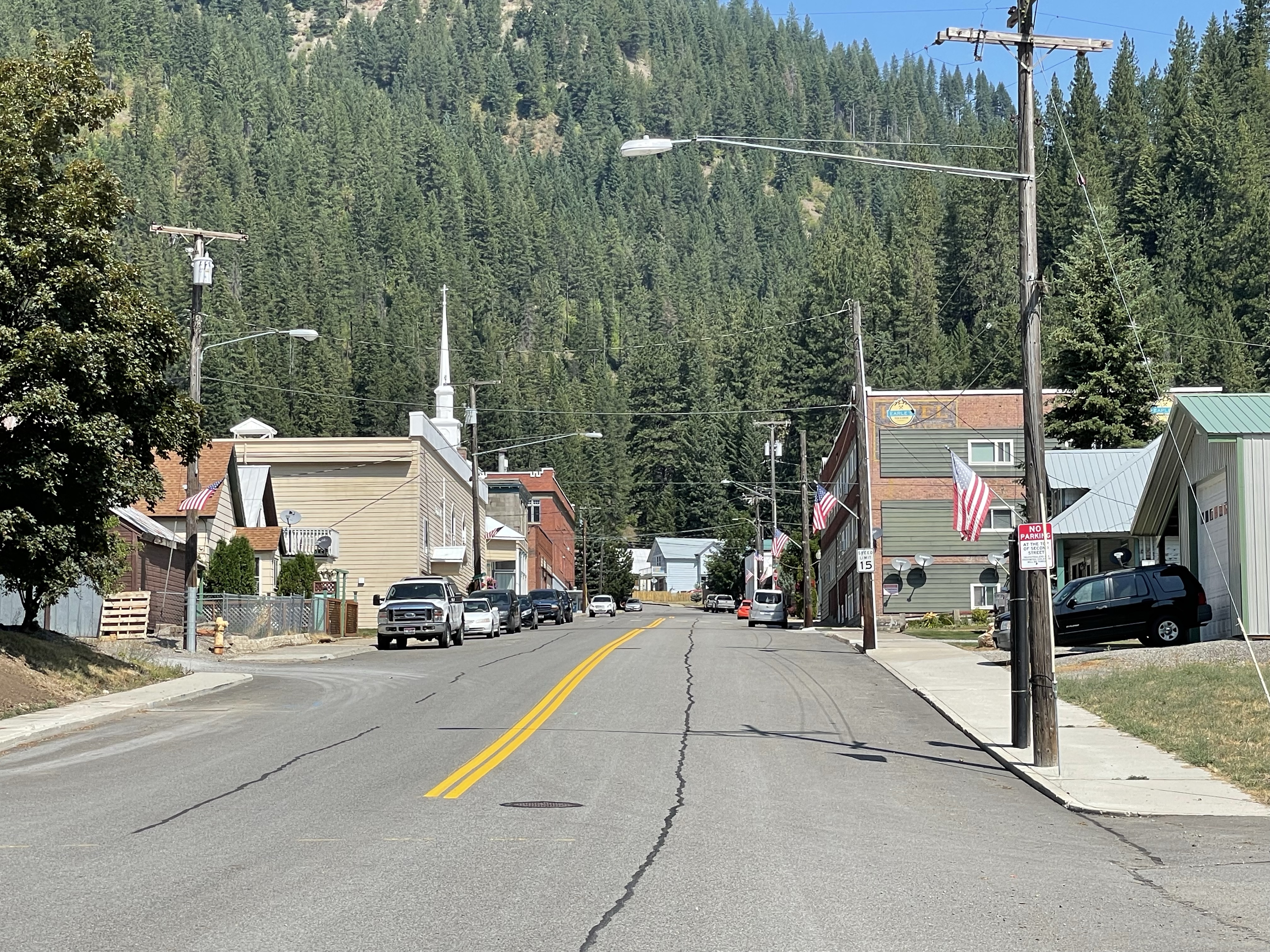 Wallace Idaho is a very famous mining town. The largest silver mining area in the world. In the 135 years of mining here, $8 billion of silver has been mined. Last year alone was over $3 million. When the town residents found out that Interstate 90 was going to be built right through their town, they had every building in town placed on the National Historic register. This then prevented the Interstate from destroying the town. I-90 now goes next to and over Wallace. They also decided that Wallace is really the Center of the Universe. They commemorated it by placing a sewer cover in the middle of the main intersection of town. Yes, a quirky place.